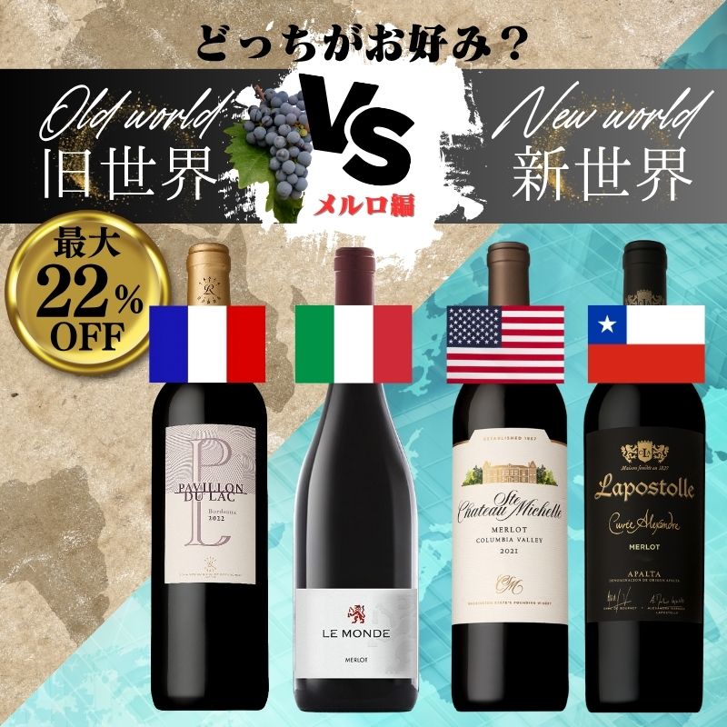 ≪22%OFF&送料無料≫【オールドワールドvsニューワールド】メルロ飲み比べ4本セット